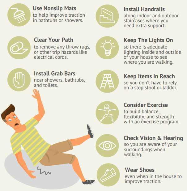Your physical health can affect your risk of tripping, slipping and falling. For example, some medications can affect your alertness, judgment and coordination. Skipping meals and not drinking enough water can make you lightheaded and unsteady on your feet -especially in the hot summer months and after exercise. Poor eyesight can lead to dangerous stumbles. The good news is there are many simple things you can do to reduce your risk of an injury from falling.